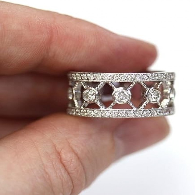 Anello nuziale impilabile in oro bianco massiccio 14k con diamanti naturali da 1,65 ct incastonati s